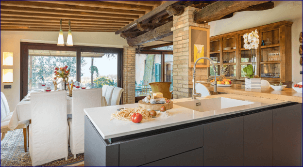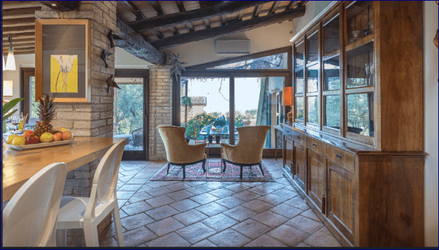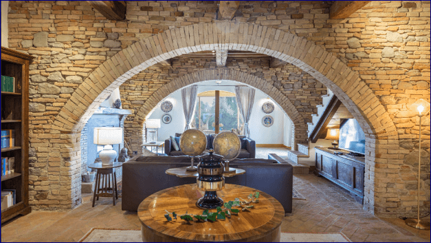 נכס מקסים זה, שראשיתו במאה ה-18, ניצב בסביבה רומנטית ואופיינית, במבנה חללים פתוחים גדולים, שני מטבחים מאובזרים היטב וארבעה חדרי שינה אלגנטיים, הפרוסים על פני שתי קומות, מרוהטים בסגנון קלאסי ומעוצבים בקפידה עם ריהוט יקר ערך, קורות עץ, רצפות טרקוטה ועץ, מצוידים במיזוג אוויר ובכל אחד חדר רחצה פרטי.