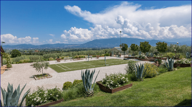 הפנינה האמיתית של נכס זה היא הגינה המרהיבה, שופעת הצבעים ומעוטרת במינים שונים של צמחים ופרחים, המתפתלת לאורך שביל טבעי מגודר לחלוטין. משלימים את התמונה האידילית הזו בריכת שחייה פנטסטית מרופדת בכלי חרסינה אפורים כהים, ובסמוך אליה מגרש בדמינטון, אזור מאובזר לארוחות ובישול בחוץ בחברה טובה וחממה שהוסבה לסלון מקסים עם נוף מרהיב על הגבעות הירוקות המתגלגלות, המשובצות במטעי זיתים,ברקע העיר אסיזי: בהישג יד מהיעדים המבוקשים ביותר במרכז איטליה. הבית ממוקם במרחק קילומטרים ספורים מבטונה, ומאפשר לכם לצאת לטיולים פשוטים כדי לחקור את ההצעות היקרות של שטחי אומבריה וטוסקנה: ערים אמנותיות יפהפיות כמו ספולטו, אסיזי, פרוג'ה, טודי, מונטפאלקו, רומא ופירנצה. שירותים וחנויות לצרכים בסיסיים נמצאים במרחק של 3 ק"מ בלבד.